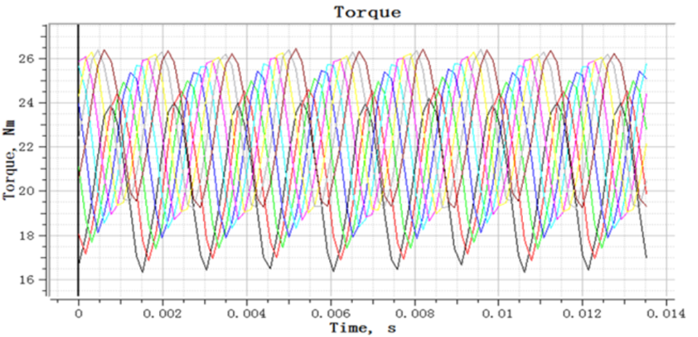 Upang magbigay ng isang komportableng karanasan sa pagsakay, ang disenyo ng makina ng traksyon ay nagbabayad din ng espesyal na pansin sa harmonic suppression, lalo na ang pagsugpo at pagbawas ng mga pagkakaugnay na mababang-order (na may malaking epekto sa kaginhawaan) at ang kanilang lakas na alon ng lakas (Larawan 8), pati na rin ang pagbawas ng mababang bilis ng torque ripple (Larawan 9) at pag-cogging metalikang kuwintas. Tinitiyak nito na ang elevator ay tumatakbo nang maayos sa buong proseso na may mababang ingay at mababang panginginig ng boses, na nagbibigay ng mga pasahero ng isang mahusay na karanasan sa pagsakay.