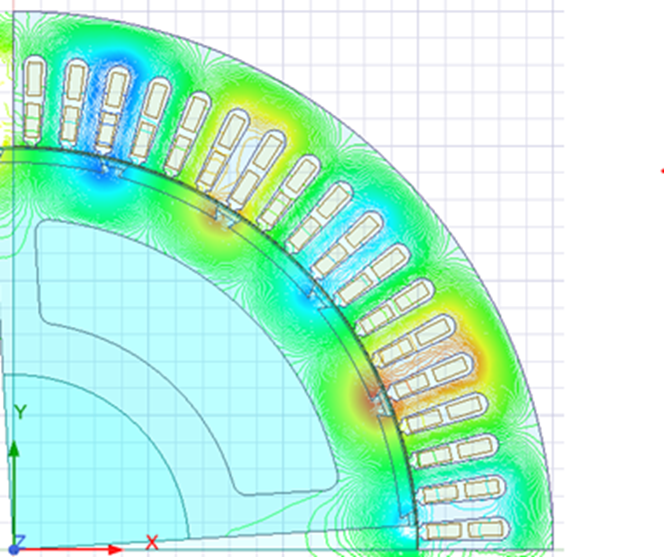 Laban sa background ng pandaigdigang adbokasiya para sa berde at mababang-carbon na paglalakbay, ang konstruksiyon ng transit ng tren ay nagsasaad ng mas mataas na mga kinakailangan para sa pag-iingat ng enerhiya. Samakatuwid, kung ihahambing sa iba pang mga elevator, ang mga subway ng mga elevator ay nangangailangan ng mga makina ng traksyon na magkaroon ng mas mataas na kahusayan upang matugunan ang mga sitwasyon sa lunsod na may malaking daloy ng pasahero. Para sa mga elevator na may bilis na humigit -kumulang na 1 m/s, ang kanilang kahusayan ay maaaring umabot ng hanggang sa 90%. Bukod dito, sa ilalim ng mga kinakailangan ng pag -install ng elevator, ang bigat at laki ng makina ng traksyon ay dapat kontrolin. Samakatuwid, ang mga inhinyero ng disenyo ng traction ay kailangang magkaroon ng mayaman na karanasan sa disenyo ng electromagnetic, i -optimize ang disenyo ng electromagnetic na may advanced na software na pagsusuri ng patlang ng electromagnetic (Larawan 5), at piliin ang naaangkop na mga materyales na electromagnetic upang matugunan ang mga kinakailangan.