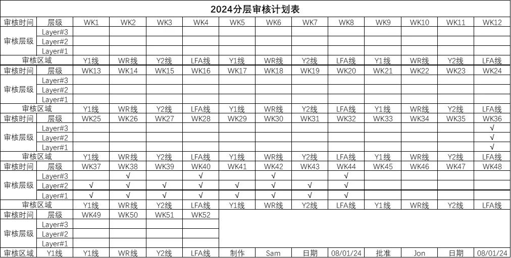 Una, isinasaalang -alang ang mahabang tagal ng inisyatibo ng pagpapabuti at ang pagnanais na mas mahusay na ipakita ang pagiging epektibo ng mga pagpapabuti, kinakailangan upang planuhin ang mga aktibidad at magbalangkas ng isang naka -layer na iskedyul ng pag -audit ng proseso. Habang madali itong ayusin ang LPA para sa mga inhinyero, maaaring mahirap pansamantalang mag -iskedyul ng oras para sa mga pinuno ng matatanda na lumahok sa LPA. Samakatuwid, ang isang plano sa pag -audit ay mahalaga at dapat na mailabas nang maaga.