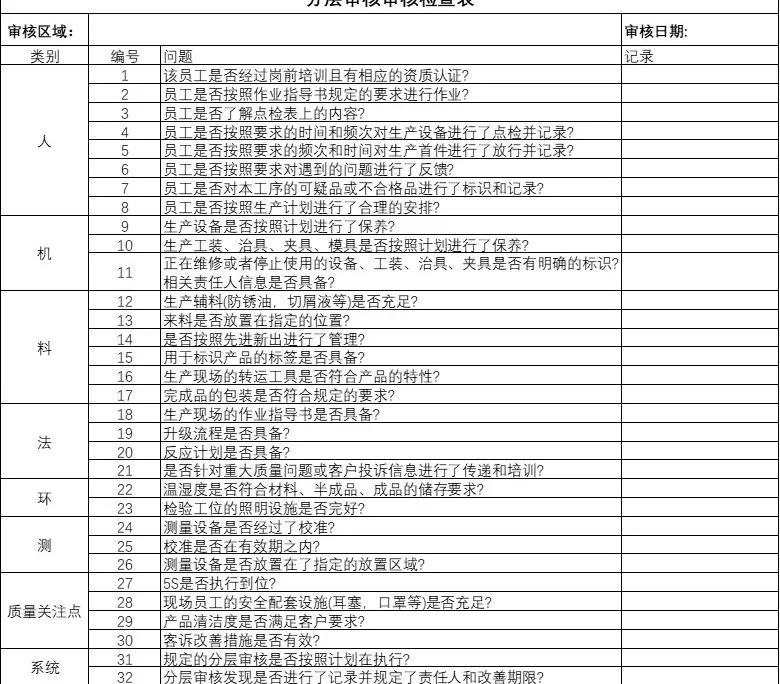 Ang pangunahing sa mabilis na pagpapatupad ng "tatlong mga kompliance at dalawang pagsunod" ay namamalagi sa pagpapatupad. Ang tiyak na pamamaraan ng pamamahala na kinakailangan para sa pagpapatupad ng in-lugar ay layered na proseso ng pag-audit (LPA). Sa LPA bilang pangunahing tool, ang komprehensibong pagpapabuti na nakatuon sa mga aspeto ng 5m1e (tao, makina, materyal, pamamaraan, kapaligiran, pagsukat) ay isinasagawa sa pag -install ng pag -install. Ang "layered process audit" ay idinisenyo upang makisali sa lahat ng mga empleyado sa pagsusuri sa "tatlong mga komplipunan at dalawang pagsunod", itaas ang kalidad ng kamalayan ng lahat ng mga kawani, at makakatulong na magtatag ng isang pag-iisip na nakabatay sa balangkas at direksyon para sa pagkilos sa kasunod na mga aktibidad sa pagpapabuti.