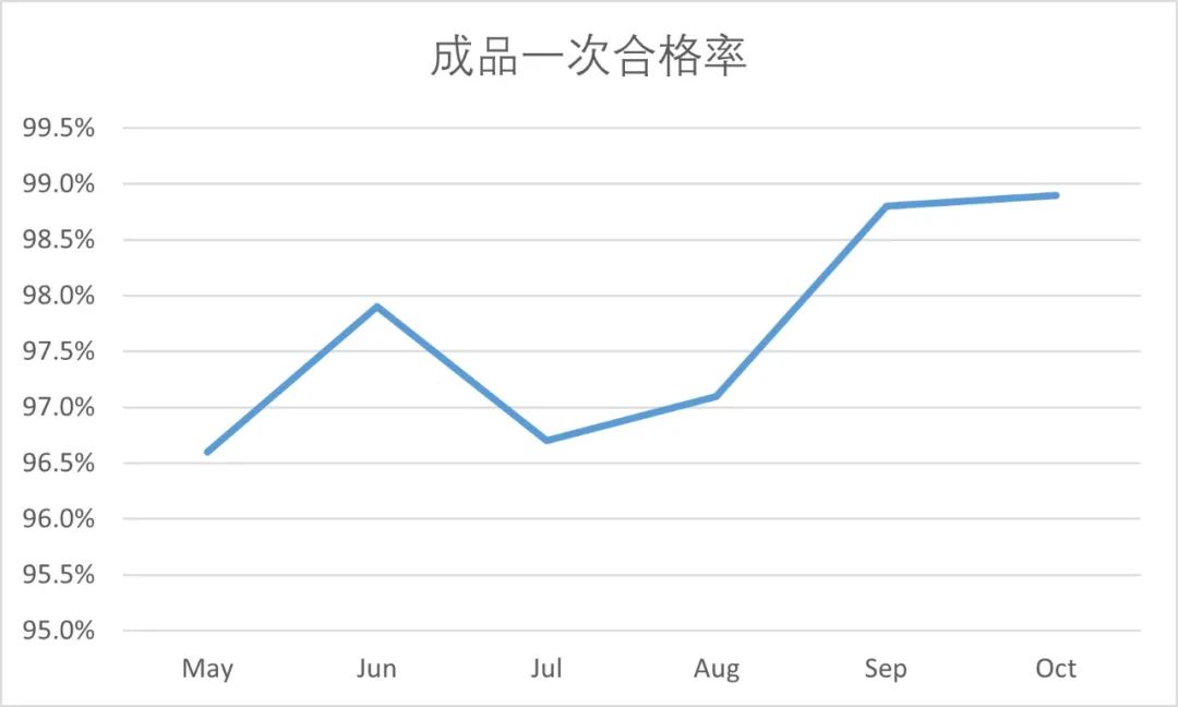 Sa pamamagitan ng pagpapatupad ng kalidad na inisyatibo ng pagpapabuti ng buwan na ito, ang kalidad ng kamalayan ng lahat ng mga empleyado ay makabuluhang pinahusay, at ang mga tagapagpahiwatig ng kalidad ay lubos na napabuti. Partikular, ang mga depekto na may kaugnayan sa "Man" factor sa 5M1E ay makabuluhang nabawasan; Ang mga rate ng nawawalang pag -install, maling pag -install, at halo -halong pag -install ay nabawasan lalo na; Ang mga potensyal na peligro ng kalidad sa mga nauugnay na proseso ay lubos na nabawasan; at ang kalidad ng pagpapatakbo ng mga proseso ay patuloy na na -optimize. Bilang isang resulta, ang first-pass ani at ang natapos na rate ng first-pass na rate ng kwalipikasyon ay nadagdagan ng 1-2%, habang ang mga reklamo ng customer at pagbabalik ng produkto ay nabawasan nang malaki. Ang mga halatang pagpapabuti sa data ay ganap na nagpapakita ng pagiging epektibo at halaga ng inisyatibo sa pagpapabuti.