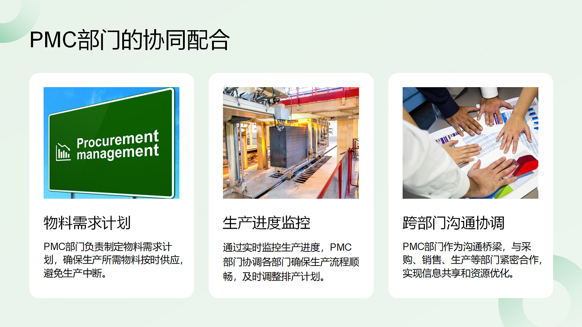 Ang pagpapatupad ng balanseng pag -iskedyul ng produksyon ay hindi maihiwalay mula sa pakikipagtulungan ng kooperasyon ng mga kagawaran tulad ng mga benta, engineering, pamamahala ng chain chain, pagkuha, paggawa, at logistik. Ang pakikipagtulungan na ito ay ang pinagbabatayan na lohika ng mabilis na pagtugon, at ang pangunahing pangunahing tugon ng mabilis na pagtugon sa feedback at komunikasyon ng impormasyon, pati na rin ang patuloy na malalim na pagpapabuti ng cycle ng PDCA (Plan-Do-Check-Act).